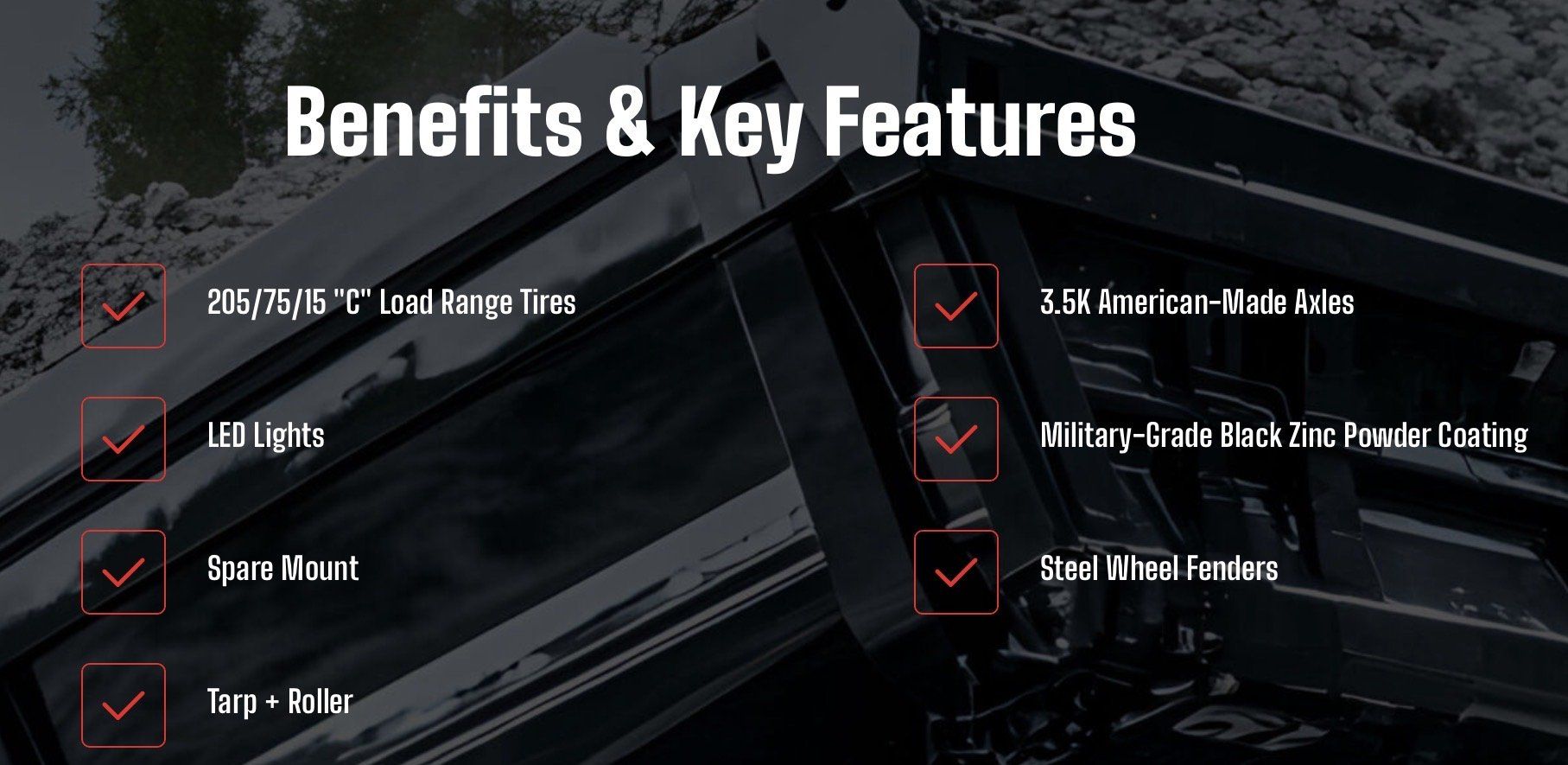 - Tarp, Battery charger & Spare tire mount